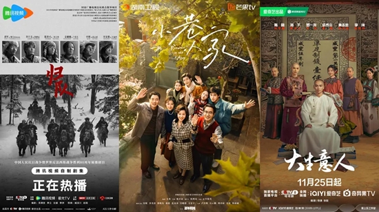 从左至右:电视剧《归队》《小巷人家》《大生意人》海报