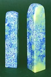 印章的形状有方、圆、长方、椭圆等,但以四方章居多。印章材质从古到今不断拓展,其中印石最受欢迎。寿山、青田、昌化、巴林是中国著名四大系印石。寿山石因其产于福州北部寿山乡而得名,其开发年代已有1500多年。青田石石质结实细密,刀感软硬适中,特别富有金石味。与寿山石主调的尚艳、尚浓不同,青田石主调尚清、尚淡,退尽火气,雍容娴静。鸡血石名满天下,而它就是昌化石中的一种,在昌化鸡血石中,除了红色的鸡血外,还有黄、白、黑褐等色。巴林石产于内蒙古巴林右旗的大板,在清康熙年间有作为贡品的记载。巴林石矿源丰富,色彩斑斓,品种繁多。