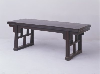 明清以来,考究的案多用紫檀木、黄花梨木等名贵的木材制成,做工精湛。此案为典型的平头案,它的特点是用重材,显得格外浑厚凝重,边抹宽度达15.8cm,厚6.5cm,紫檀家具用如此大料实属罕见。此案造型方正,工艺精致,装饰简洁,是一件典型的明代家具。