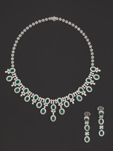 祖母绿及钻石项链及耳坠套装祖母绿及钻石项链及耳坠套装