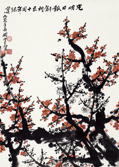 据了解,《光明日报》作为党联系广大知识分子的桥梁和纽带,在国内外具有广泛的影响。长期以来,《光明日报》着力弘扬中华民族优秀文化,得到书画艺术领域众多名家大家的支持与厚爱。齐白石、李可染、高剑父、刘海粟、关山月、吴冠中、张仃,以及冯其庸、欧阳中石、沈鹏、冯远、刘大为、张海、杜滋龄等书画名家的作品和学术思想,都曾通过《光明日报》向海内外读者做过生动详尽的介绍与推广,同时,作为《光明日报》的良师益友,他们也创作了大量精品力作,为光明日报社和广大读者留下了弥足珍贵的文化积累。鉴于此,本次展览还特别从60余年来的800多件光明日报社珍藏作品中精选出80余件参展,不少作品是首次面世,观众可以一饱眼福。其中有齐白石的《喜上眉梢》、蒋兆和的《春光明媚》、李可染的《铁骨红心迎来天下春》、叶浅予的《高原舞姿》、陆俨少的《新安佳胜》、关山月的《梅花》、吴冠中的《太湖之滨》、白雪石的《芭蕉山水》、周思聪的《打场》、刘文西的《夏荷》以及林散之、启功的书法作品等等,这些作品既是艺术家们留下的宝贵的文化财产,也代表了几代艺术家与《光明日报》心连心的深情厚意。