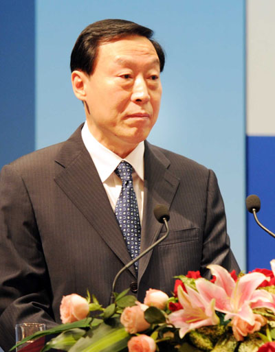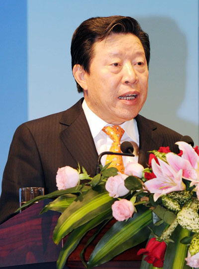 5月18日,由太湖文化论坛、中国文联、江苏省人民政府、中国人民外交学会共同主办的太湖文化论坛首届年会在江苏苏州开幕。图为全国政协副主席、中国文联主席孙家正出席开幕式并致辞。姚永强 摄