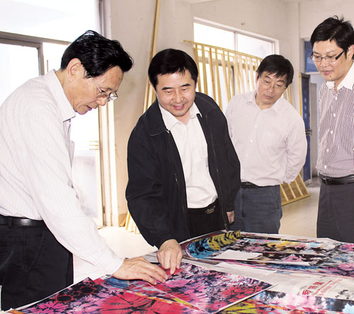 5月下旬,中国民协分党组书记、驻会副主席罗杨深入到南通市海安县,对“南通扎染”产业进行了调研。“扎染”在我国有着悠久的历史,始于秦汉,兴于魏晋南北朝,丰盛于唐代。到了民国时期“扎染”已十分普遍。随着时代的发展,传统的“扎染”技艺逐渐走向消亡。而到了上个世纪70年代中期,南通市扎染厂和海安县扎染厂先后诞生,并逐步对外扩展,不断扩大生产规模,一度加工点达200多个,加工队伍达60000人。仅用了不到5年时间就占领了日本扎染和服市场的90%。又向欧美、东南亚诸国及港澳台地区拓展,商务部授予南通和海安两厂为“出口创汇基地”。