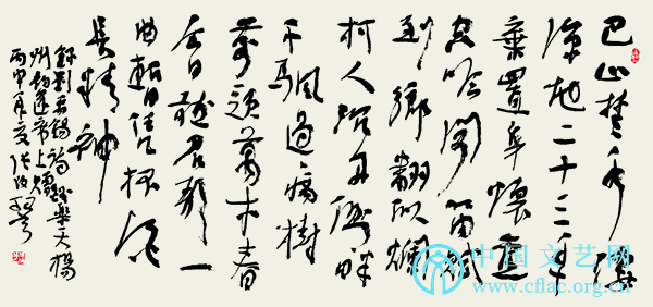 “或许是得益于长年苦心于书画两个艺术门类的融会贯通,我一直想用笔墨传达出一份既属于生于斯、长于斯的那一方土地,也属于我个人的胸臆间的那一份特有的情愫。”张改琴说。我们由此上溯到徐谓、文徵明、金农、赵之谦、吴昌硕、齐白石等,他们也均是因将书画二者“融会贯通”后而成为书画大家的。中国书法的线使中国画成为以线为主的艺术,书法的狂草促使了中国画大泼墨的形成,这是表面可视的形质,而二者内在的、观察事物的角度、对艺术上气韵、节律的把握则有着更为内在的联系。画家往往心胸更为博大,视野更为开阔,而具体到用笔、用墨、章法上更为大胆,这一切无形中会对身兼书画两项的艺术家更便于互相借鉴、融会。张改琴在山水画方面下的功夫不亚于书法,她所画的一山一水,绝不是纯客观的对西北大自然的描绘,那是画匠们的事。她说:“山水画绝不是为山水而山水,为景观而景观的客观再现,它更是在山水、自然与人生的关联中寻找和开辟一个传达情感的空间,并以此探讨山水、自然的文化特质与文化底蕴。”如果将“山水”二字改为“书法”,那么我们也会感到这是一个在更高层次上寻找将自然、人生、笔墨相关联的更深层的思想,当画家的心灵与大自然与笔墨贯通之后,在书法的实践中就绝不会成为对前人俯首称臣的匠人,她会以一个真正的艺术家的心灵赋于她们钟爱的书法事业,在更高层次上去探索、去学习、去创作。我们在张改琴的书作中感受到了画意,而在其山水中又看到了“写”的艺术表现,故她的书作不是“做”,不是“描”,而是如画的挥运,是自由的表达,是情感的宣泄,这就是作为真正艺术家的书法家与只斤斤于古人框架中讨生活的匠人最大区别。
