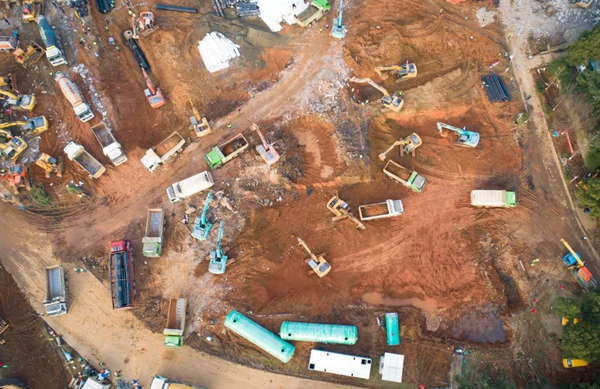1月30日拍摄的武汉雷神山医院建设工地(无人机照片)。