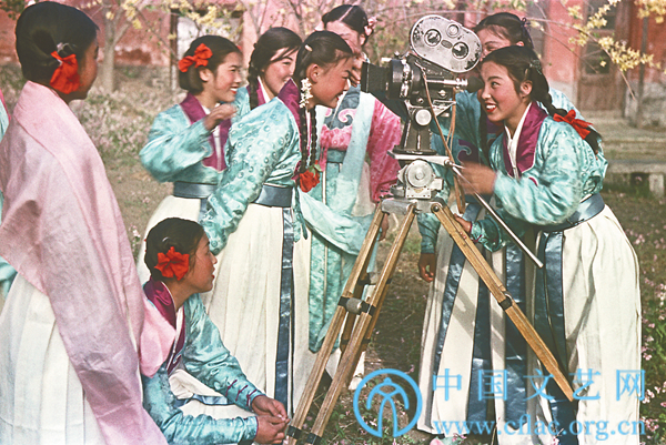 故宫内,戏剧学校的学生们在电影摄影机前