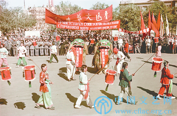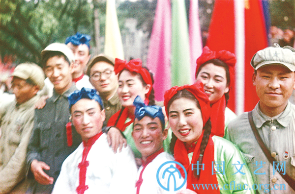 1949年10月1日,天安门广场上的民间歌舞团成员