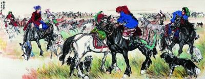 欢腾的草原(国画) 142×360厘米 1981年 黄 胄