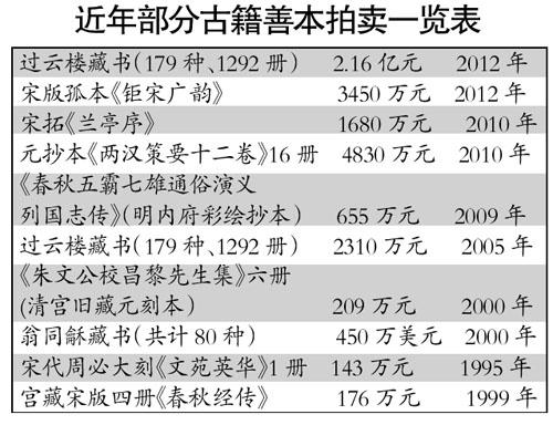 2012年,先是年中“过云楼藏书”以超2亿的“天价”成交,后是年尾“广韵楼”宋版孤本《钜宋广韵》以3450万元落锤——在去年惨淡的艺术品市场中,一向低调示人的古籍善本板块大放异彩。仿佛在一夜之间,从“非主流”的小众板块变成了众所关注的“蓝筹股”。