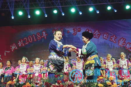 第二天晚上,十八洞村与国强文化在村部礼堂举办了十八洞村“11 · 3”纪念日文艺晚会,来自周围村寨和其他社会团体踊跃参加,奉献了丰富多彩的节目。花垣县排碧中学和十八洞村诗朗诵组的20位中学生声情并茂地朗诵了诗歌《十八洞村的故事》 ,收获了热烈的掌声。