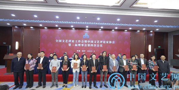 当天上午的会议上表彰了2022年度全国文艺评论工作先进集体和先进个人。本次理事会与2023年全国文艺评论工作会套开,赖洪波、容本镇、戴清、胡建礼、邹赞等先进集体和先进个人代表作经验交流发言。