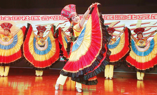 近日,来自北京市朝阳区15支社区群众文艺团队的300多名演员在朝阳门街道登场一展舞技。他们之中最年长的演员年龄近八十岁,最年轻的演员也已经五十多岁。此次展演是中国社会工作协会社区工作委员会在全国开展系列展演活动的第一站。 新华社发 张爱东 摄