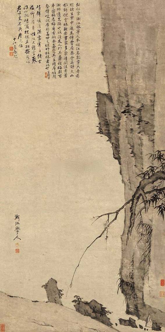 峭壁竹梅图 渐江(明末清初)