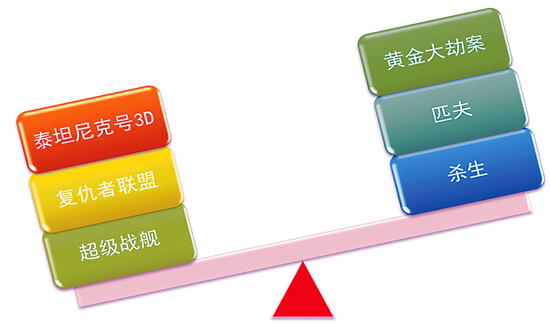 然而,天有莫测之风云!中国电影人发现,美国电影对中国电影市场的冲击和影响比原来意料的要大得多。2012年“五一”前后档期,一批近年来备受关注的国内中青年导演推出的新片密集上映,集体抱团抗击“好莱坞”,被很多媒体形容为“抗坞”大战。“国产电影抱团抗击好莱坞”成为当时被业内议论最多的话题。最终的市场检验证明,当初院线人士预测实在太过乐观,宁浩的《黄金大劫案》、管虎的《杀生》、杨树鹏的《匹夫》三部电影并没有达到业内人士的期望。面对严酷的市场,《黄金大劫案》中“谁说金镖不如洋枪”这句打气话体现出的只是一种阿Q精神。目前“金镖还真不如洋枪”——我们国产电影的艺术品质、艺术感染力和市场竞争力与好莱坞电影、尤其是好莱坞大片相比确实还存在较大的差距。在国产电影的市场份额不断下降的背景下,业内外唱空国产电影的声音不绝于耳,甚至一度成为了媒体的“主旋律”。