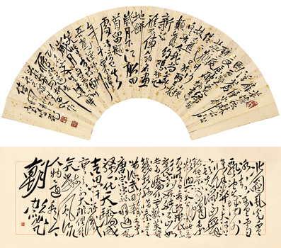 周鹏飞说,毛主席的书法是自怀素以来中国草书艺术的又一高峰,蕴含着一代伟人勇于开创天地的磅礴豪情和恢弘气度。从毛泽东的草书可以观其“掌上千秋史,胸中百万兵”的人文修养与雄才大略。要学好他的草书,实非易事。那么周鹏飞为何要知难而上、矢志于此呢?出生于书香世家的他受祖父影响,从小受到书法氛围的熏染,行书学习何绍基,本性所遣,草书学习祝枝山,17岁时根据自己的笔性,确定以毛体为学习突破口,这自然对周鹏飞提出了极高的要求。但他化压力为动力,深入钻研毛主席的书法艺术,逐渐找到了一些适合自己的独家妙法。从学习毛体草书之日开始,周鹏飞就不是一字一画地去临摹,而是去领会一代伟人的精神气概和创作意境,“看过很多遍后,直到有感觉才写出来”。因为他从毛主席的草书中看到,这位伟人是把一篇字当作一个字写,一气呵成地抒发豪情壮志。周鹏飞告诉记者:“今天我们需要毛体书法,需要那种大气磅礴、自觉有担当的时代精神。”