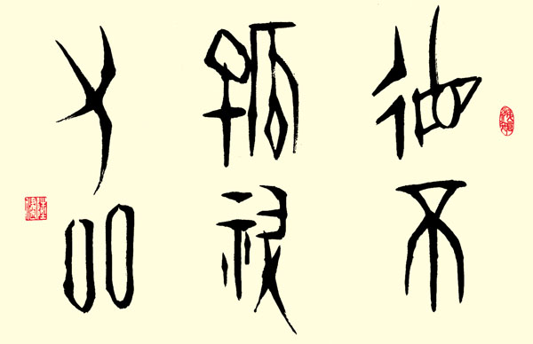 就我个人看来,甲骨文创作不是“无法”可依,而是书家有“法”不依,或懒得依。甲骨文书法创作还是有“法”可依的,顾名思义,甲骨文书法是以甲骨文字为表现对象的,因而正确写出甲骨文字,应就是甲骨文书法的基本大法。不能说,书家写出的一堆连甲骨学者都不知为何意的“自造”莫名其妙的所谓“甲骨文字”,就是甲骨书法了。因为这些任意自攒的“甲骨字”,不仅是与甲骨文及甲骨文偏旁结构毫无关系的满篇涂鸦,就是攒字的书家自己写完后,过一段时间恐怕自己也不认得攒的是什么字了。