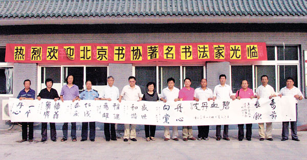 为庆祝“八一”建军节,弘扬红色文化,7月28日,中国书协顾问、北京书协主席林岫,中国书协理事、北京书协副主席龙开胜、刘俊京、李有来、孟繁禧,北京书协副秘书长贾伟,北京书协理事马俊明、刘楣洪、邢光辉等10人,赶赴北京门头沟区斋堂镇马栏村冀热察抗日展馆进行慰问笔会。门头沟区委副书记陈志强及万钦、刘贵清、于金玉、李秀民等当地负责人参加欢迎仪式。