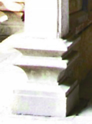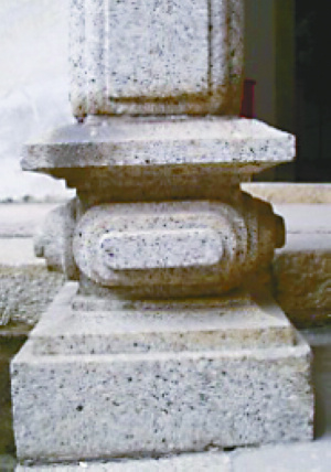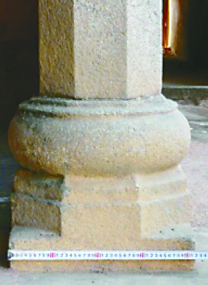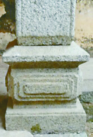 另外,本地区存在的这种柱础形式的演进并非是一种替代性的演进,而是一种层进式的演进。像前述鼓式柱础直至光绪年间仍有使用,当然其形式上出现了束腰更细的变化。还有四方式柱础,早期那种层次较少、束腰较粗的形式在清光绪年间仍然可以找到,这说明一些新形式柱础的出现并没有完全取代一些老式柱础,一些原有形式的柱础仍会继续使用,当然其使用范围已大大减小。这点与珠三角广府地区的柱础形式变化规律则有所不同,以四方式柱础为例,到清代晚期,四方式柱础均是那种层次丰富、束腰较细的,那种层次简单,束腰较粗的柱础已难觅踪影,其演进表现出一种替代性的特点。