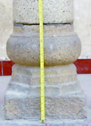 经过对各时期围屋内柱础进行统计归纳,发现清嘉庆年间之前柱础形式较为单一,多为鼓式柱础(图6-图8)。相较于其它形式,鼓式柱础的上段柱质部较薄。鼓式柱础的出现时间并不明确,大致到明代时开始成为民间一种流行柱础样式,这一形式柱础在广东客家地区比较流行。