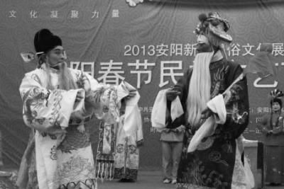 在新春佳节期间举办的2013年河南省安阳市蛇年新春民俗文化系列产品展会上,河南省林州市新艺四股弦剧团带来了《忠保国》等传统剧目和新编剧目,使得当地戏迷朋友又听到了久违的林州四股弦。