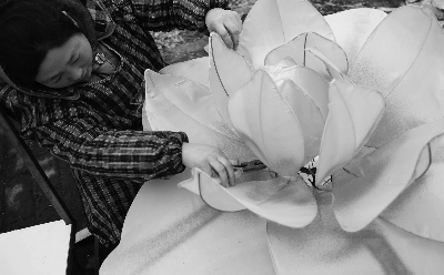 元宵节临近,山东省聊城市民间花灯艺人们正抓紧时间赶制各式花灯,准备参加当地元宵灯会,喜迎佳节闹元宵。图为民间花灯艺人李凤英在制作花灯。新华社发(张振祥 摄)