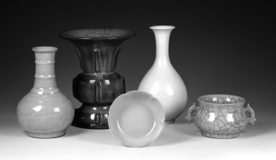 宋瓷对单色釉彩情有独钟,青瓷极具艺术张力和市场魅力。自古陶瓷皆重青品,宋代五大名窑除定窑外,汝、官、哥、钧都属青瓷。深沉、优雅、含蓄是青瓷美学的境界,凝重、浑厚、滋润是青瓷的艺术特色。当下仿制的青瓷中,有梅子青和粉青釉,釉色晶莹清澈柔和,造型简约,体现了儒雅沉静的气质,而非轻浮浅薄的热烈,为大众所喜爱。定窑白瓷,以其高贵的出身,辉煌持续百余年,如银类雪是宋代文人的追求,体现了宋代士大夫的心境。如今仿制的定窑白瓷明快、秀丽、严谨、精巧、光挺,无论薄如蛋壳精巧剔透的薄胎瓷,抑或浑厚古雅的皇皇巨制,皆呈现出玉脂般内敛沉静的质地美。