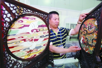 苏州缂丝织造技艺的传承人在整理缂丝工艺品新华社发(许丛军 摄)
