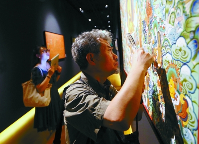 观众参观唐卡展览。 陈 曦 摄