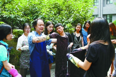 尽管只是作为选修课开设,但参与这项课程的学生却一年多过一年。“刚开始是20个人选课,后来增加到30个、40个,很多学生报不上名,没学分,也来听课、参与,今年我的班最后有六七十名学生,还有不少是韩国、斯里兰卡等外国的留学生。”国家级非遗传承人、南通蓝印花布印染大师吴元新每年都来此授课,学生们的热情让他看到了中华文明传承的希望,同时,与学生们的互动和交流也极大地拓宽了他的视野和思路。