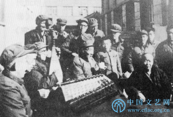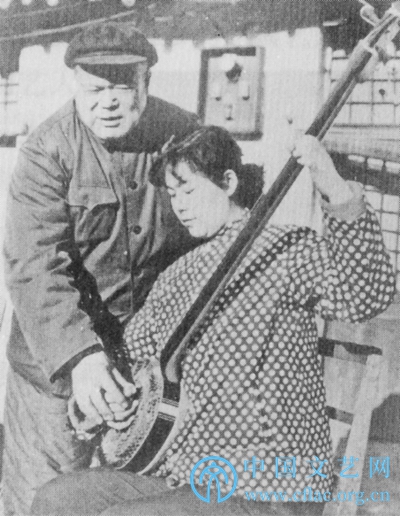 陕北说书盲艺人韩起祥教女儿韩应莲学习演奏