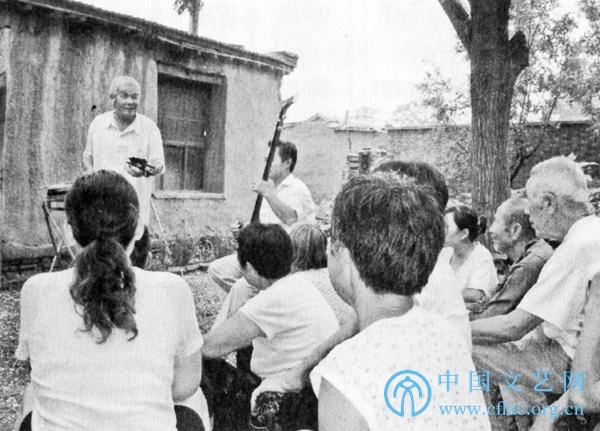 木板大鼓庞凤成派第八代传承人唐贵峰在农村演出