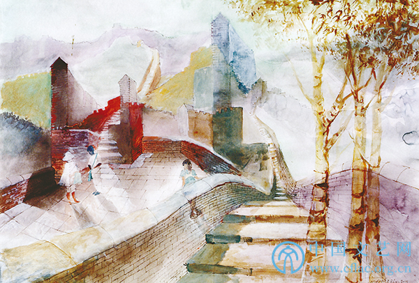 长城(纸本水彩) 马苏德·阿·汗(巴基斯坦)