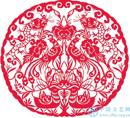 窗花,是逢年过节粘贴在窗户上的,用来装饰环境,美化生活,期望吉庆,增加节日的欢乐气氛。制作时一般都用红纸,透过阳光照射,剔透玲珑,艳丽夺目,出现一种特有的艺术效果。窗花的形式,一般比较自由、舒展,其外廓没有限制。