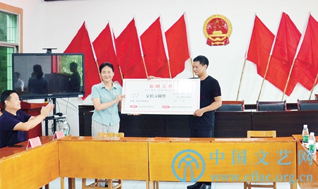 江西省文联党组书记马玉玲代表省文联向太坪村捐赠扶贫款。