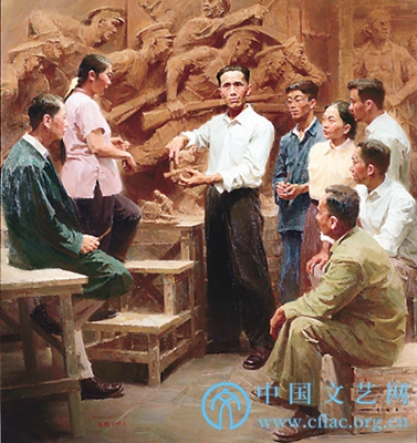 2019年7月,第十五届江西省美术作品展览暨参评第十三届全国美术作品展览在南昌举行。江西省作品入选全国美展110件,为历年江西入选数量最多的一次。图为参加全国美展进京作品展的吕鹏的油画作品《为新中国塑像》。