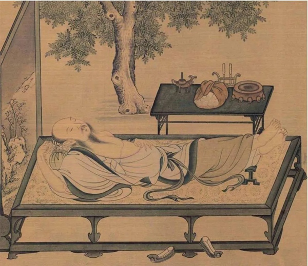 古时床与榻的功能近似,都是可卧可坐的家具,不过床、榻是两种卧具类型,形制上并不相同,功能上也有微妙差异。宋代的床,主要是摆放在卧室供睡觉用的卧具,具有一定的私密性;而榻则是安放在书房、客厅的坐具,具有陈设的功能,更注意装饰与美观,当然也可用来躺卧、憩息。打个不是十分准确的比方,宋榻有点像现代家具中的沙发,今人的客厅少不了一套沙发,宋人的客厅则少不了一张坐榻。 从南宋《韩熙载夜宴图》(北京故宫博物院藏)的“听乐”部分,我们可以看到宋代的床与榻。图中的床为帐床,三面有围子,铺有床单,帐帘卷起,露出一面围子与一角锦被。榻是黑漆的围子榻,围子绘有装饰画,上面坐著主人韩熙载与一位红衣客人。《宋人十八学士图(二)》(局部) 现藏于台北故宫博物院