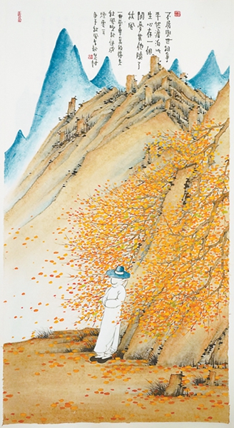 我个人的理解是,既然很多人并不能轻易地进入一个纯粹绘画的世界,比如很难理解国画当中的笔墨趣味和复杂的程式系统,那么,一方面可以强化绘画内容的叙事性:有故事、有意境、有趣味——我们在过去流行的连环画、漫画、宣传画当中,经常看到这种处理方式。绘画作品这种文学化的表达,很容易获得那些由阅读建立起来认知习惯的观众们的理解。另一方面,保持中国传统绘画诗、书、画、印四位一体的格局,借助文字的叙事和抒情功能,将观众带入绘画的情境当中,图文相互映照,便可消除所谓纯粹绘画那套视觉语言的专业障碍,进而理解你的绘画表达。