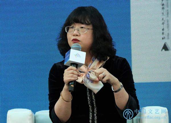 10月12日,太湖世界文化论坛第六届年会网络文艺论坛在安徽蚌埠举办。图为北京大学教授、博导,网络文学领域知名专家邵燕君发言。
