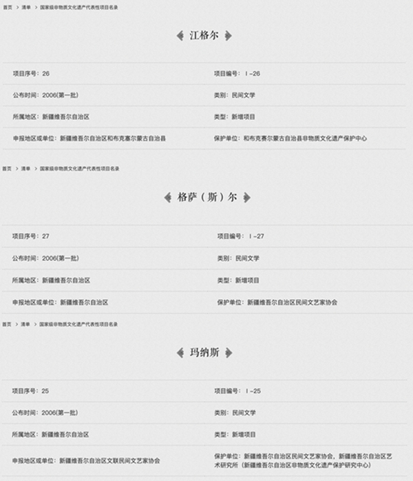 搜集记录整理者:居素甫玛玛依等 收录于2006年公布的第一批国家级非物质文化遗产名录