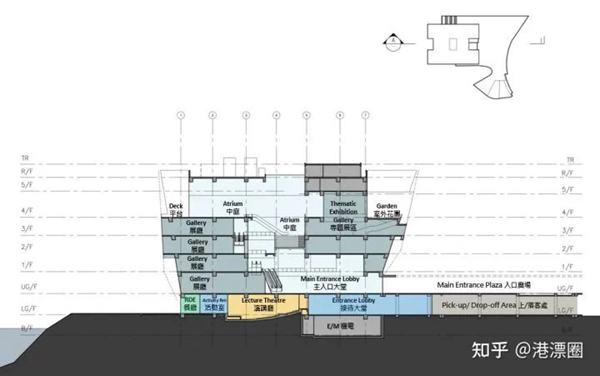 同时,香港故宫引用了紫禁城的中轴线的概念,又结合香港向上发展的现代都市建筑风格,把中轴线向上延伸,引领访客向上参观。