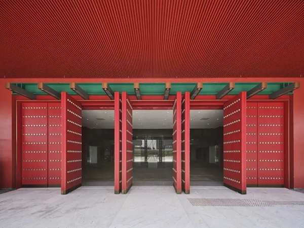 据中国建筑国际集团香港故宫文化博物馆项目负责人王勇介绍,香港故宫文化博物馆大门非常有故宫特色,它是由五个门十扇构成的,门上有一些玻璃钉,总共有810个,也是参考了故宫的一些做法来做的。前面的平台广场金水河的设计也非常有特色,它是用玻璃天幕来做的,不是一个真正的一个水或者河,但它的这个曲线和造型是跟金水河一致的。
