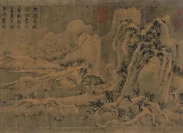 山水画成熟于五代至北宋年间,宋徽宗的《雪江归棹图卷》一般被视为中国山水画早期高峰期作品,也是宋徽宗赵佶存世的唯一一幅山水画作,绢上既能看到宋徽宗代表性的签名“天下一人”,也有瘦金体书“雪江归棹图”。该画作曾于2015年与《清明上河图》一起在故宫博物院展出。