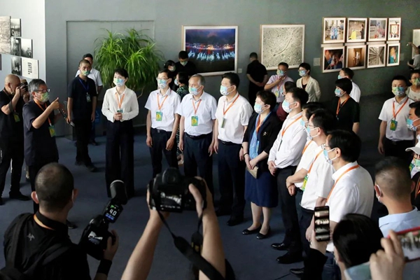 领导和嘉宾在第28届全国影展展览现场观看展览。 张双双 摄