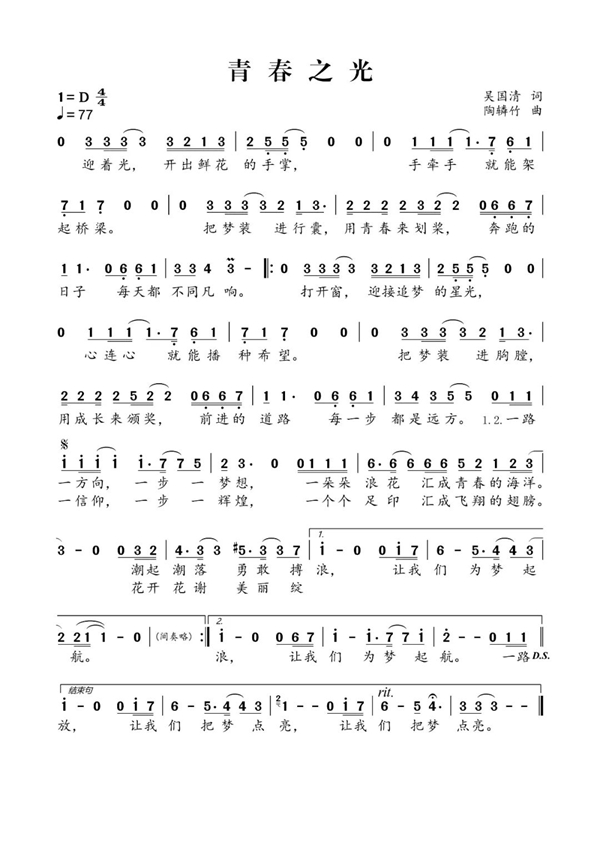 为深入学习贯彻习近平新时代中国特色社会主义思想和党的二十大精神,充分展示广大青少年在新时代新征程路上的新风貌、新形象、新风尚,由中国音乐家协会指导、四川省文学艺术界联合会主办、四川省音乐家协会承办的“阔步新时代·校园好歌曲”征集评选活动,聚焦 “我们的新时代”主题,力争推出一批反映校园生活、青春梦想,健康向上、温暖好听、活泼有趣的适合广大青少年歌唱的校园歌曲。