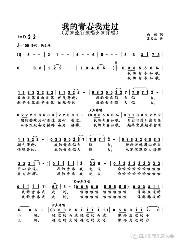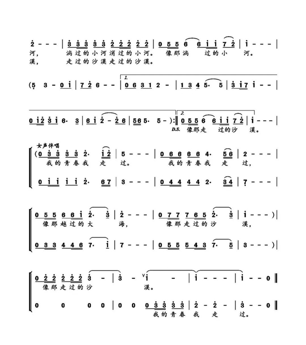 《我的青春我走过》是一首二部曲式的男声流行演唱、女声伴唱的校园歌曲,表现了青年一代在党的阳光照耀下,蓬勃向上,奋发努力,积极、勇敢、拼搏的精神。