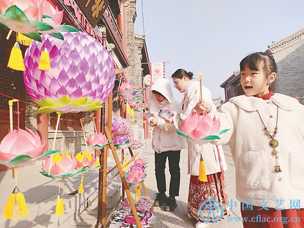 年节期间,市民在山东无棣古城挑选手扎莲花灯 蒋惠庆 摄