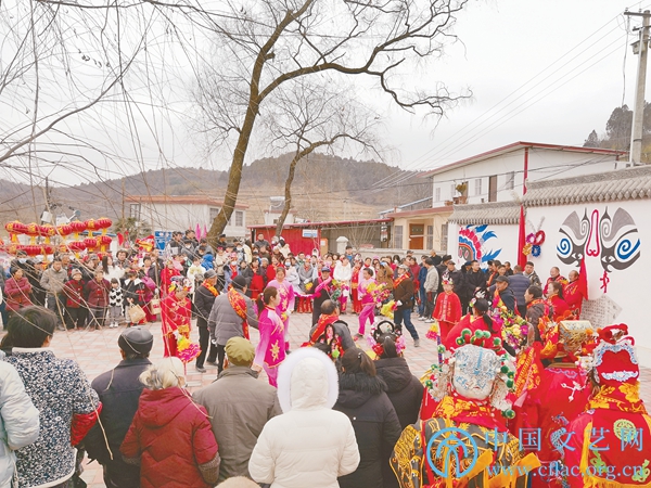 “不点花灯月不圆,不耍社火怎过年”。在甘肃,农耕文化衍生出祭天,祭祖,祭山川、土谷之神的兴盛仪式,民间传统民俗活动——社火就起源于此。歌如潮、花似海、鼓阵阵、舞翩翩……正月初六,陇南徽县田河村社火队正在为晚上“出庄”的第一场演出紧锣密鼓地彩排。排练现场,舞龙舞狮、划旱船、扭秧歌、大头和尚等民间表演轮番上阵,不仅仅呈现出宝贵的民间艺术和多姿的群众文化生活,更体现出了阖家欢乐、安居乐业的新气象、新风貌,是年味儿,也是乡愁。“腊月里来哎哟,满一哟年啊……”社火曲、甘肃省级非遗——河池小曲声声入耳,从内容、形式到题材、唱腔,无一不展示着当地的风土人情。乡村大舞台,群众是主角,演的是乡亲,唱的是乡音,舞的是乡情。田河村社火“头子”桑积富既是这支社火队的组织者,也是陇南市级非遗徽县山歌传承人,今年春节隆重的社火演出让他格外兴奋:“我们的队员都是‘农民艺术家’,会打鼓的打鼓,会唱曲儿的唱曲儿,实在没有表演才艺的也争着抢着来动手做社火道具,老人们只要身体好,都想加入,想把快失传的传统社火传承下去。”近年来,传统民俗文化活动备受追捧,社火表演也通过直播形式走入千家万户,经典唱腔口口相传,凝聚起了热爱传统社火的人们,每逢春节期盼着传统年俗文化回归。