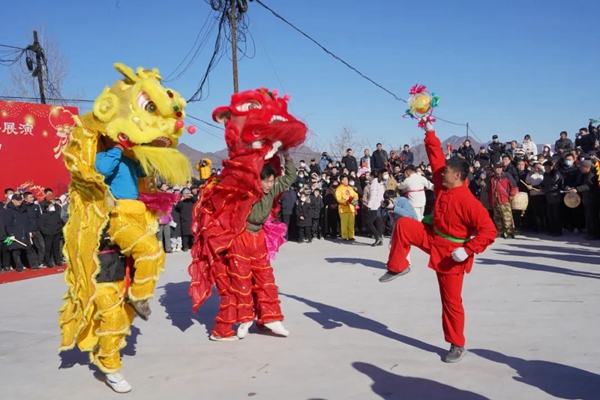 河北省承德市隆化县蓝旗镇少府村元宵花会舞狮表演