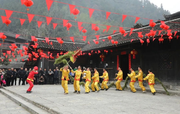 湖北省恩施土家族苗族自治州宣恩县民间灯班大巡游舞狮表演