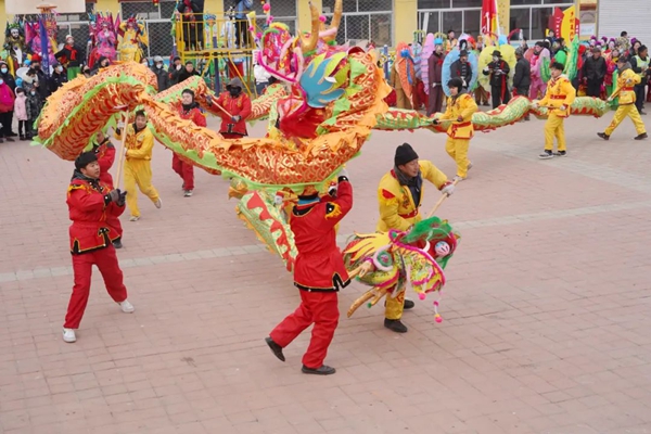 龙灯、狮子、武会、二贵摔跤、旱船、莲花落(霸王鞭)、小车会、大头和尚、背歌、跑驴、王大娘锔大缸、秧歌、高跷、八大怪、串龙等分档节目一一精彩亮相。